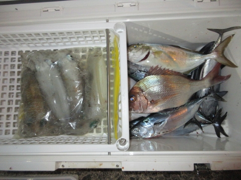 魚種 サイズ 数 メダイ 92・90p 2尾 真鯛 78・57p 2尾 アジ・サバ・レンコ・ハイブリッド