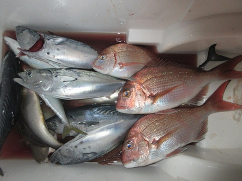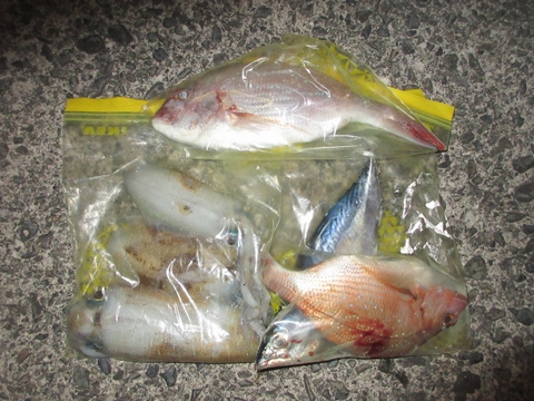 魚種 サイズ 数 真鯛 47〜40p 2尾 スマカツオ 18尾 イサキ 20尾 チダイ・レンコ・アジ・サバ ツバス・ウスバ・ハイブリッド