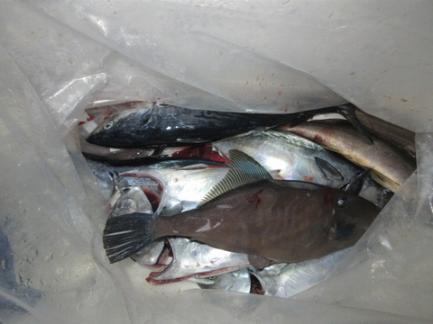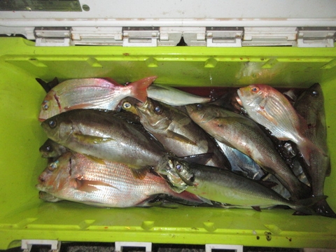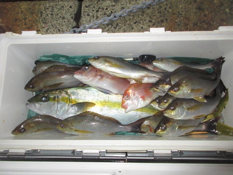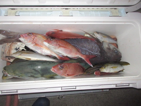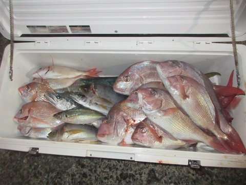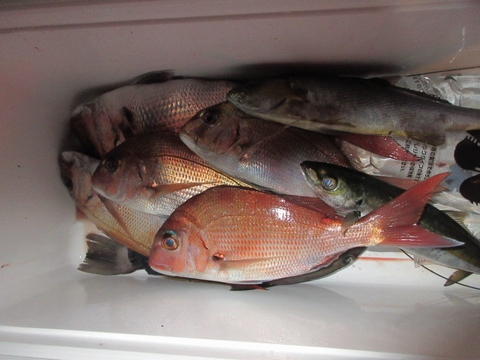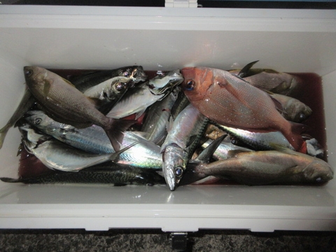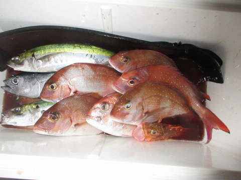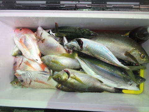 魚種 サイズ 数 ヒラマサ 70〜55p 3尾 真鯛 48〜35p 4尾 イサキ 15尾 チダイ・レンコ・アジ・サバ・ウマ