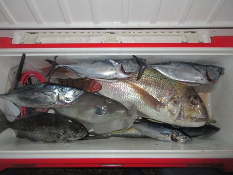 魚種 サイズ 数 真鯛 75・54・48p 3尾 スマカツオ 17尾 ツムブリ・イサキ・カイワリ・ウスバハギ アコウ・ガシラ・ウマ・ハイブリッド
