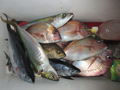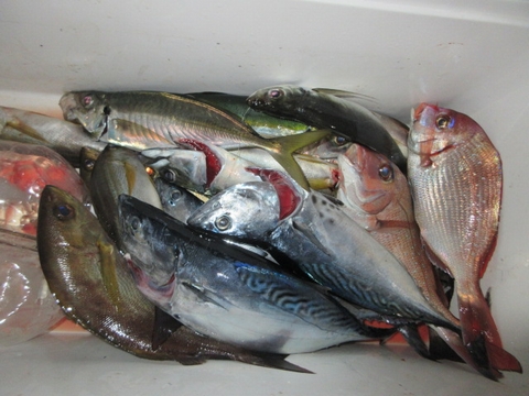 魚種 サイズ 数 真鯛 80・47〜35p 8尾 スマカツオ 7尾 イサキ 35尾 アジ・サバ 25尾 ツバス・チダイ・レンコ・ツバス・カイワリ サゴシ・アオアジ・ウマ・ハイブリッド