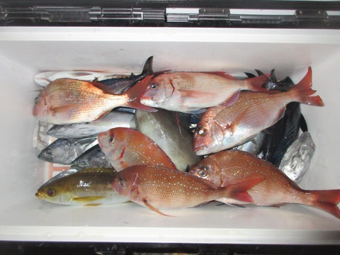 魚種 サイズ 数 真鯛 60・45〜35p 15尾 スマカツオ 38尾 イサキ 15尾 チダイ・レンコ・ムロアジ・サバ ウマ・ハイブリッド