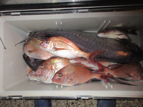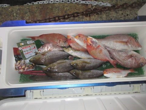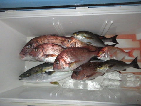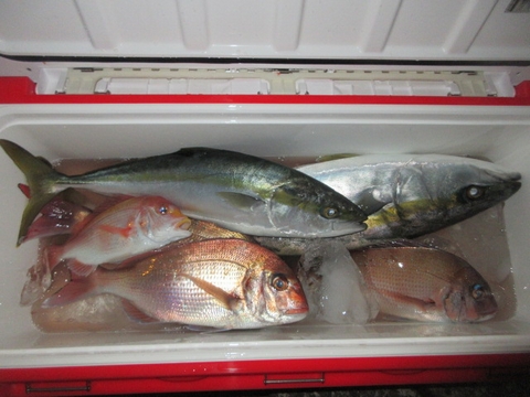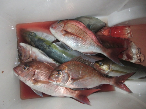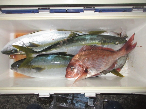 魚種 サイズ 数 ヒラマサ 60p 1尾 真鯛 48〜40p 4尾 イサキ 10尾 チダイ・アジ・ウマ
