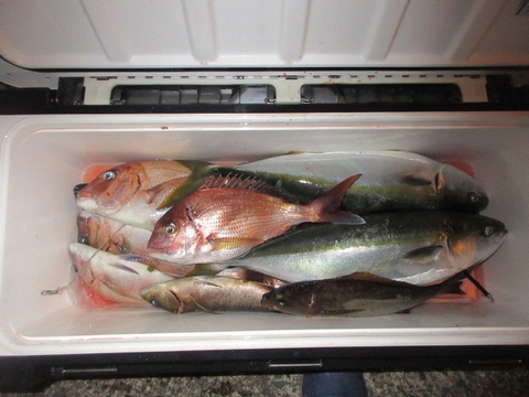 魚種 サイズ 数 ヒラマサ 89・70〜55p 6尾 ハマチ 1尾 真鯛 48〜40p 3尾 アジ・ウマ