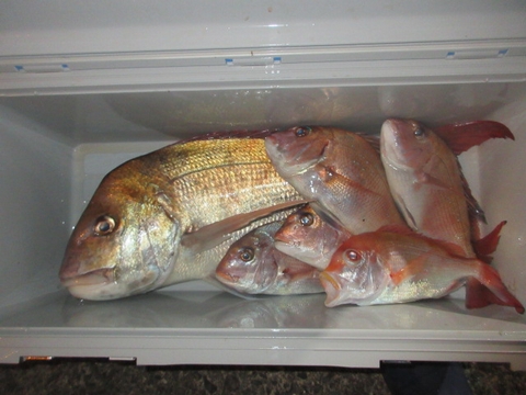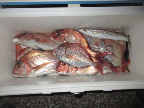 後半の真鯛も夜釣りの納竿まで