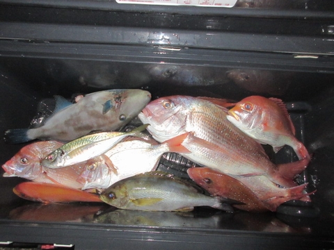 魚種 サイズ 数 メダイ 85・84p 2尾 ブリ 1尾 真鯛 58・50・48〜40p 5尾 イサキ・フエフキ・ウマ