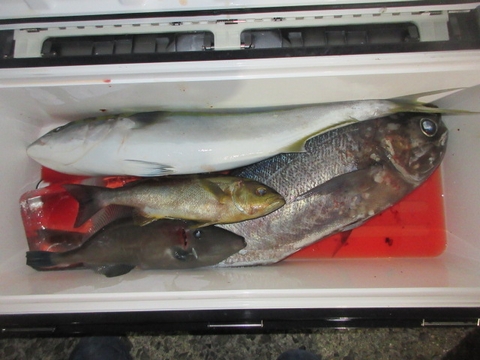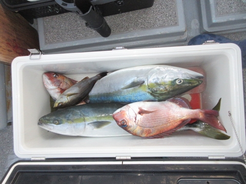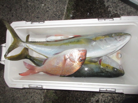 魚種 サイズ 数 ヒラマサ 70〜55p 4尾 ハマチ 真鯛 グレ アジ・サバ・イサキ・レンコ・ガシラ・フエフキ・ウマ