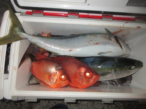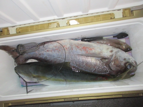 魚種 サイズ 数 メダイ 97・96p 2尾 ヒラマサ 70〜55p 2尾 ハマチ 3尾 真鯛 40〜20p 5尾 イサキ・レンコ・ウマ