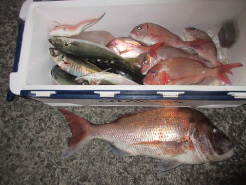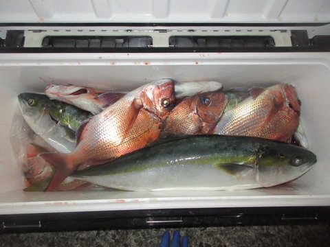 魚種 サイズ 数 真鯛 48〜20p 18尾 大アジ・大サバ 45〜40p 15尾 ハマチ 3尾 チダイ・レンコ・イサキ・グレ・サンバソウ・ウマ
